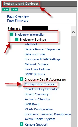 Next navigate to "Enclosure Settings" -> "Configuration Scripts" under "Systems and Devices" as shown below