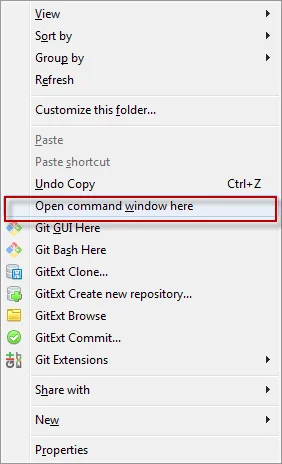 Here click "VCSU-CommandPrompt.cmd" or open a "command prompt" by clicking "Shift + Right mouse (touchpad) button" and select "Open command window here" as shown below