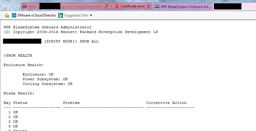 A Show All report would be the first thing requested by HPE engineers to debug a case or issue observed on the enclosure or blades.