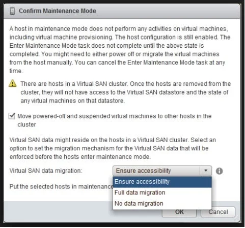 I came across an issue with 6.0 U3. I set a host in maintenance mode with option "Full data migration" in a cluster, and i could see all the VMs moved, but when entering maintenance mode the host stalled at 68%. There was no signs of progress for long time (nearly an hour).