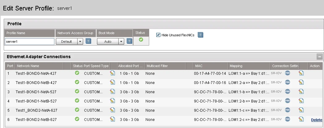 ->set enet-connection server1 1 Network=Test1-BOND0-NetA-427 SpeedType=Custom Speed=1000 PXE=Enabled