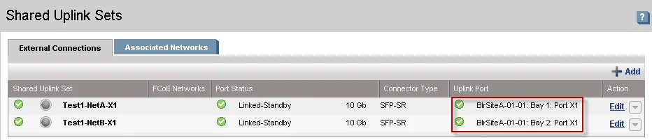 ->add uplinkport enc0:1:X1 UplinkSet=Test1-NetA-X1 Speed=Auto Role=Primary