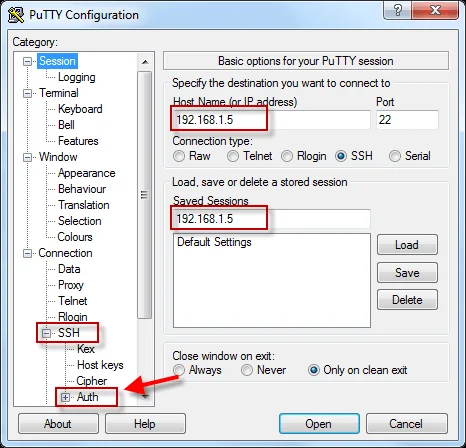 Open Putty and add the Linux box IP as shown below